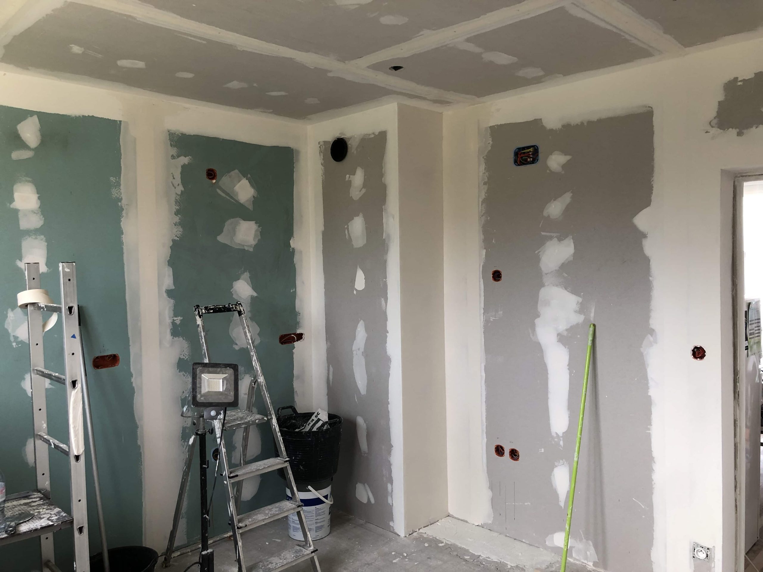 - Pose des structures (placo, renforts pour meubles hauts, etc.)
