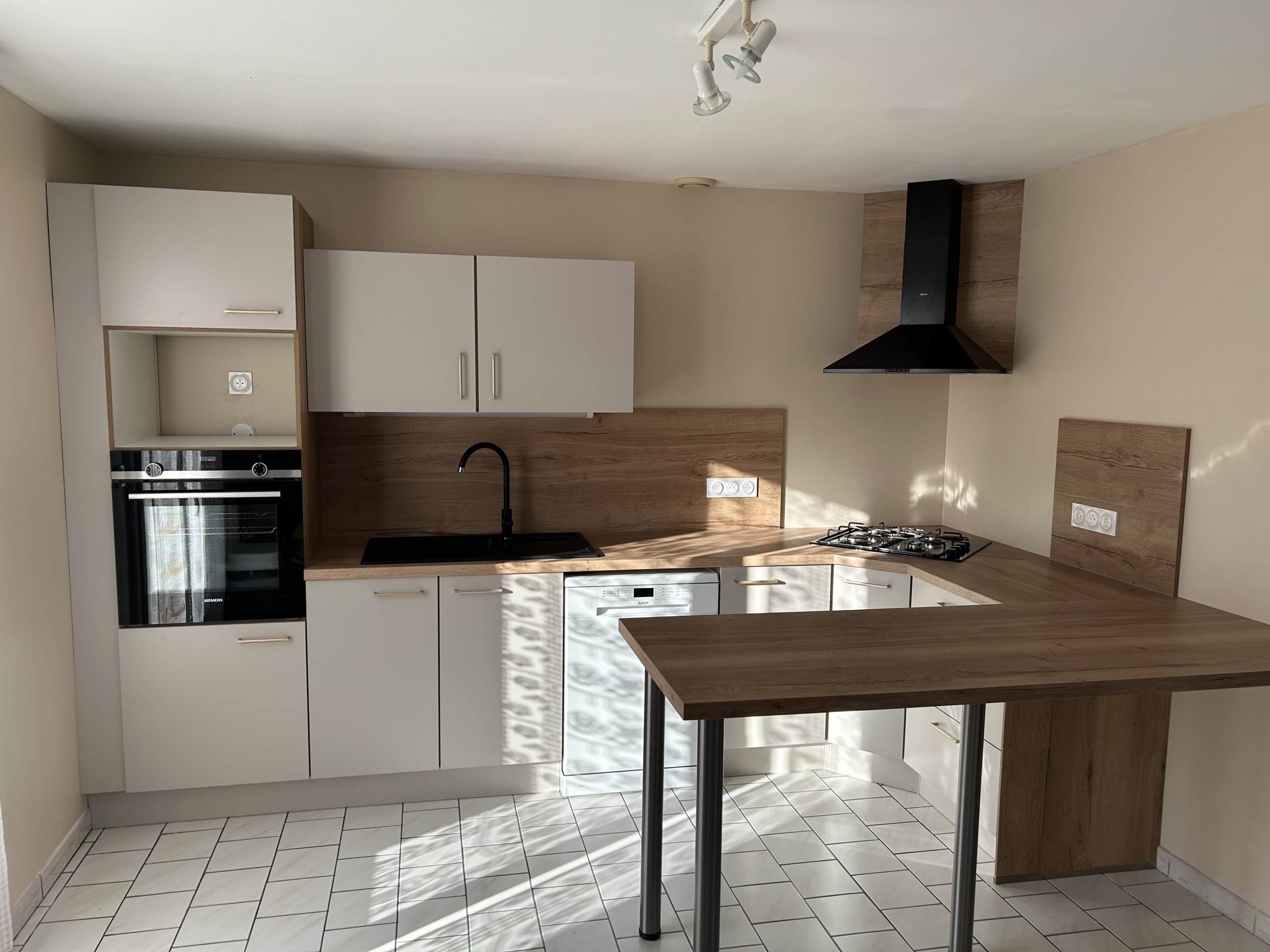 - Installation complète : meubles, plans de travail, luminaires, équipements électriques